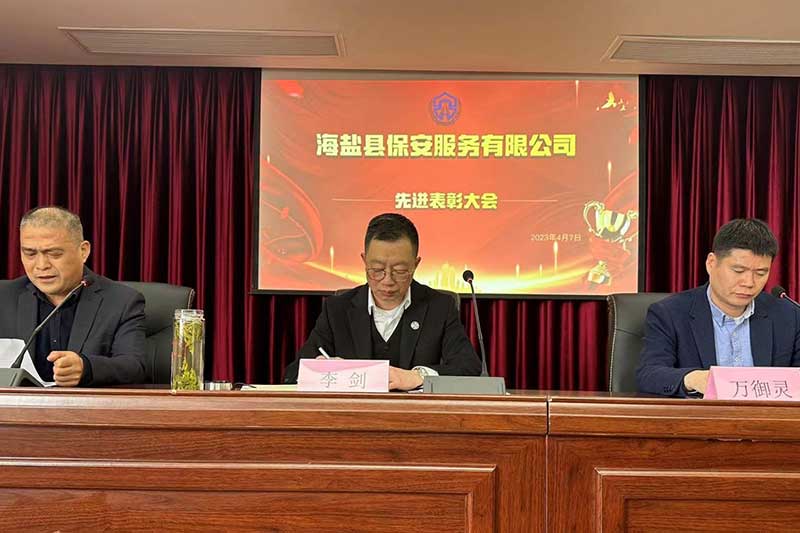 海盐县安保服务中心主任李剑在表彰工作中强调:此次大会,既是盘点成绩、鞭策后进的总结表彰会,同时也是明确任务、落实责任、鼓劲加压的动员部署会。既是对个人的肯定,也是对整个公司运营发展的肯定。保安公司作为海盐县保安服务行业的龙头企业,集合了安保巡逻、物业防护、安全培训、安防设施安装、日用品销售、车辆交易管理等多维度服务场景运用,不仅获得了客户单位和主管部门的肯定与好评,同时也在社会发展中起到了积极作用,获得群众好评,树立了良好口碑。希望所有员工立足岗位,争先创优,实现自身能力发展和公司运营发展的良性互动。
