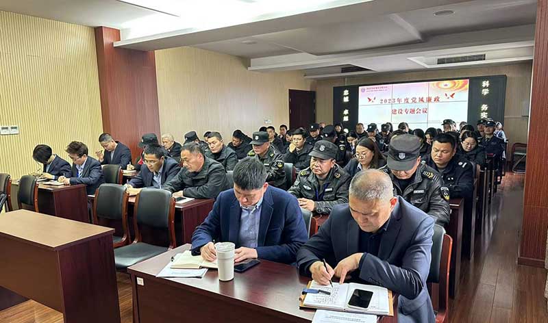 为强化优秀员工表彰奖励,纵深推进“清廉国企”建设,2023年4月7日下午,县保安公司召开先进表彰大会暨党风廉政建设专题会议。公司班子领导、公司及检测站中层、人防部区域副大队长、各部门班组长、员工代表等相关人员参加会议。驻公安局纪检监察组组长董学飞和县公安局党委副书记、政委朱琪峰参加了第二议程的会议并作指示和点评。
