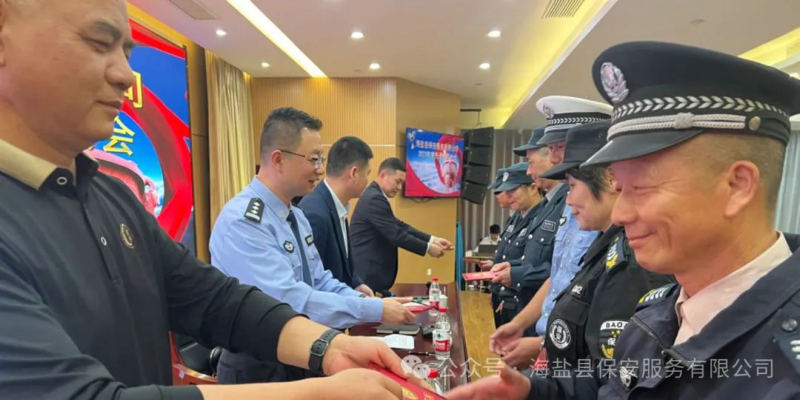细数峥嵘奋斗路,表彰最美盐保人,擘画清廉国企美好未来。2024年4月24日下午,海盐县保安服务有限公司召开年度先进表彰大会暨党风廉政建设专题会议。海盐县公安局保安公司党支部书记李剑、海盐县保安服务有限公司总经理万御灵、总经理助理洪沈忠、海盐众安机动车安全技术检测有限公司主要负责人陆卫杰等公司班子成员、各部门中层、班组长、受表彰人员共105人参加会议。海盐县纪委县监委驻公安局纪检监察组组长董学飞受邀参加会议并作指导讲话。
