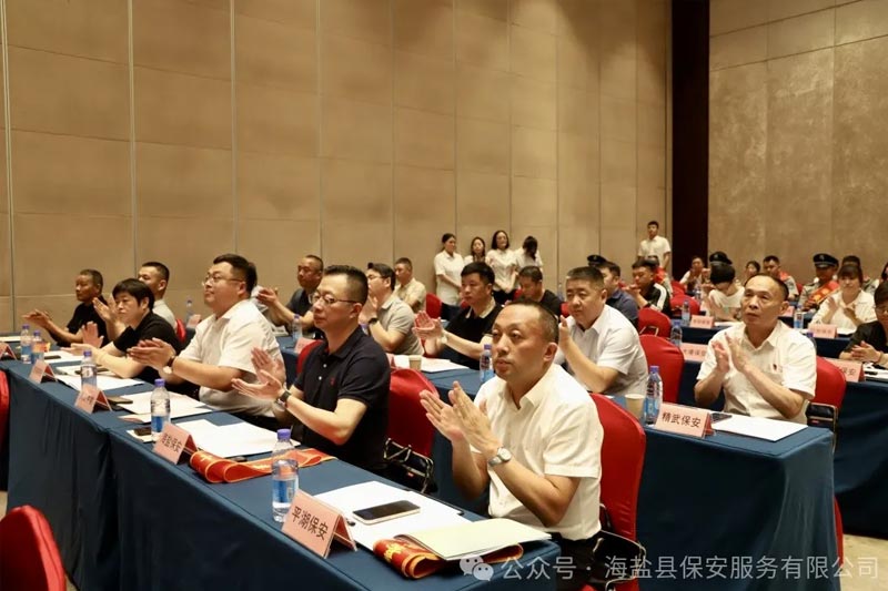 2024年6月19日下午,由嘉兴市公安局、嘉兴市保安协会联合举办的全市保安行业总结表彰大会在秀洲区召开。市公安局党委委员、副局长连永刚,市公安局治安支队支队长叶春煦,市公安局治安支队副支队长郑奕,市保安协会会长冷江浩,市保安协会秘书长支信平等领导出席会议。市公安局、各县(市、区)公安分局有关领导、协会会员单位以及受表彰代表近百余人参加了会议。海盐县公安局保安公司党支部书记李剑参加会议。
