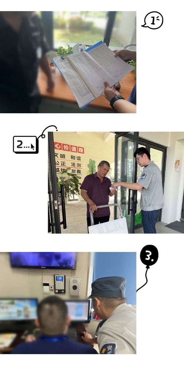 要求队员对一键式报警器、电子围栏、内部监控设备等基础安防设备进行现场操作,重点检查防冲撞自动升降桩、监控视频设备运行、回放以及访客登记台账,确保派驻保安员熟识安防设备操作方式,服务流程规范,实现人防、技防双保障。