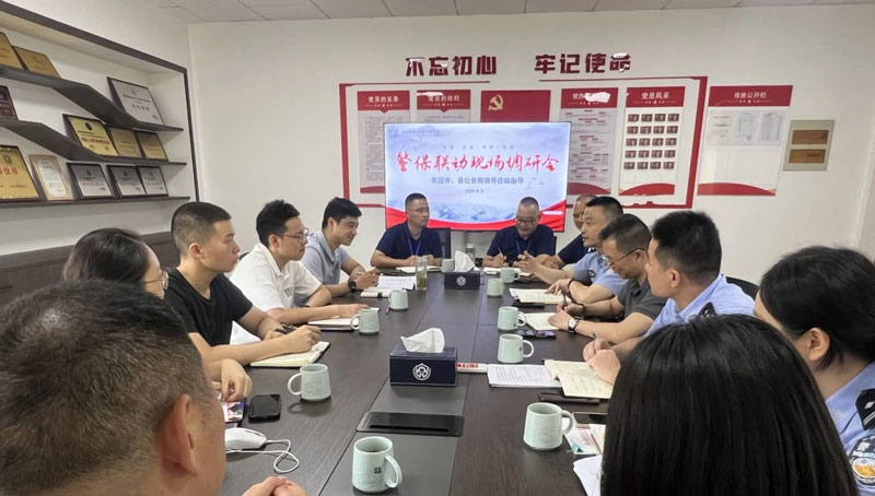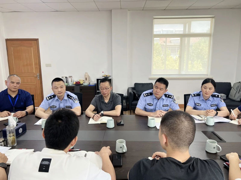2024年9月2日上午,嘉兴市公安局治安支队副支队长郑奕、治安管理支队内保保安管理大队大队长蒋少衡等一行3人莅临公司指导调研警保联动工作。海盐县公安局治安管理大队大队长沈凯、海盐县公安局保安公司党支部书记李剑、武原派出所副所长潘维、海盐县公安局治安管理大队副大队长姚钟燕等陪同调研,公司总经理助理洪沈忠、人防部、技防部门主要负责人以及嘉兴移动海盐分公司相关负责人作交流介绍。.