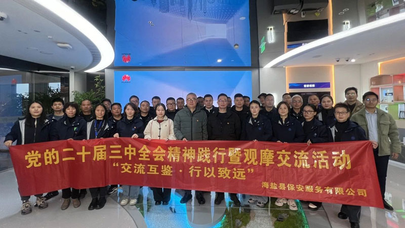 为深入学习贯彻习近平总书记关于国有企业改革发展和党的建设的重要讲话精神,12月23日下午,公司组织开展党的二十届三中全会精神践行暨“交流互鉴 行以致远“观摩交流活动,公司党支部书记李剑、总经理万御灵等携全体在职党员、中层人员共31人赴华为技术有限公司浙江代表处考察调研,海盐县公安局三级高级警长何俊杰陪同调研,华为浙江嘉兴办事处数字政府行业代表陈超峰、合作伙伴业务经理吴驭文及相关人员陪同交流。